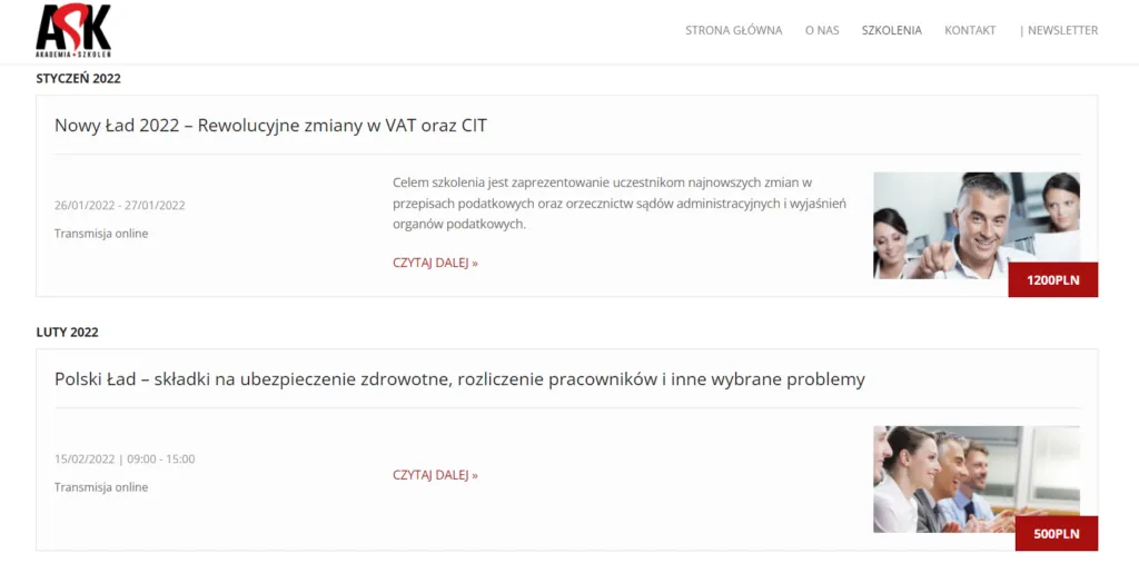 Akademia szkoleń skupia się na bieżących problemach i rewolucyjnych zmianach. Terminy płatnych szkoleń online dostępne aż do marca 2022 roku!